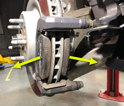 - Turn the front wheel hubs to point fully left, and then repeat step 12 through 23 for the front RH caliper.
