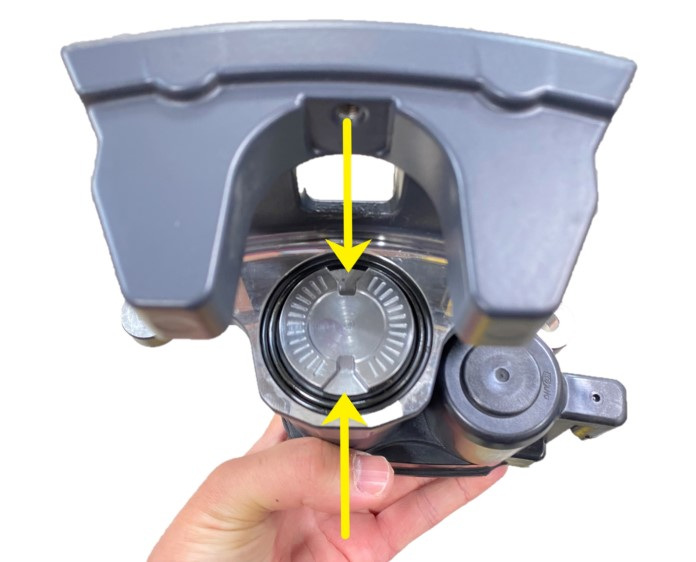 - Set the slots of the rear LH caliper piston face at the 12 o'clock and 6 o'clock positions.