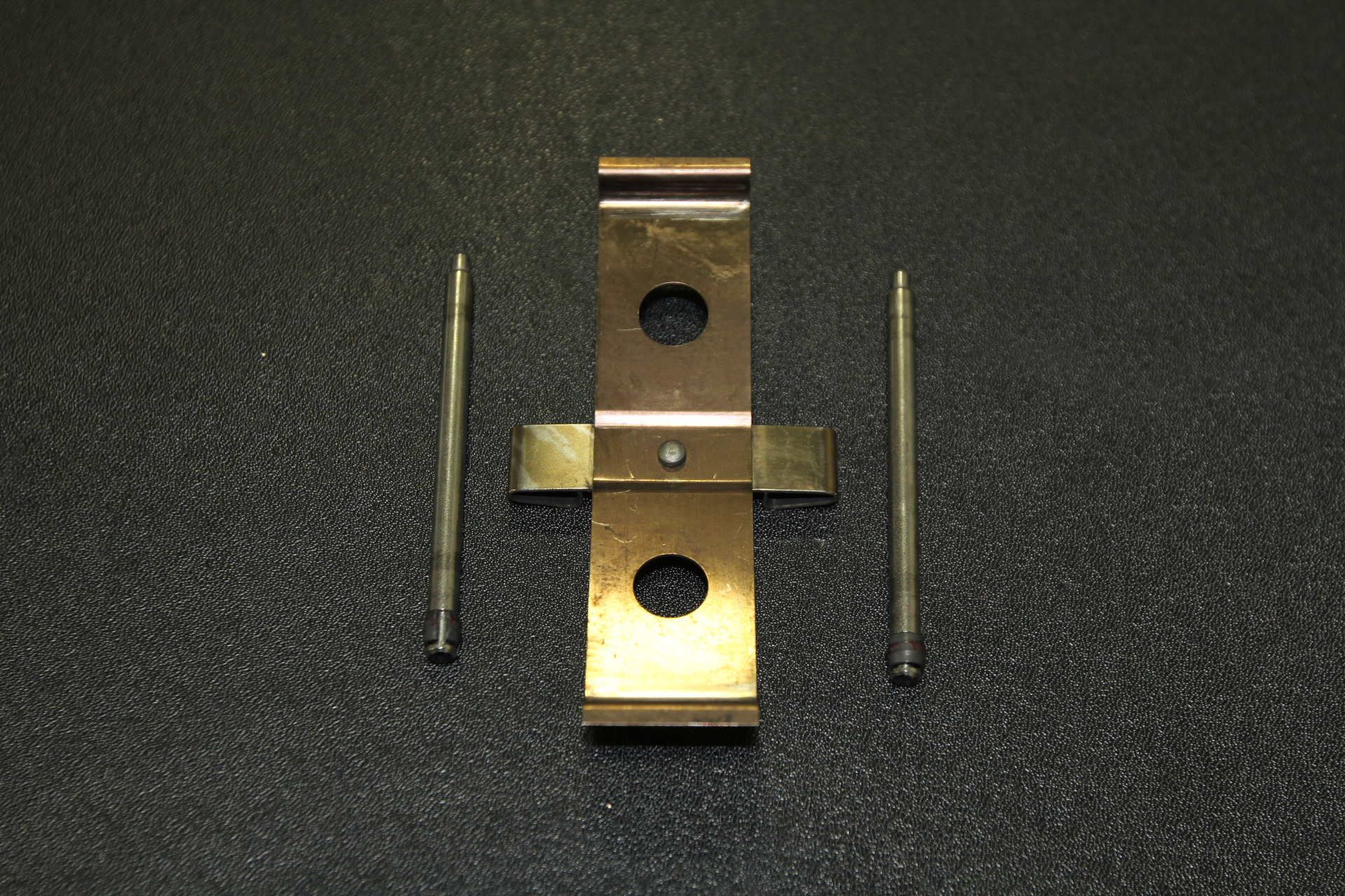 - Use the appropriate pin punch to install the anti-rattle spring and retaining pins into the front LH caliper.