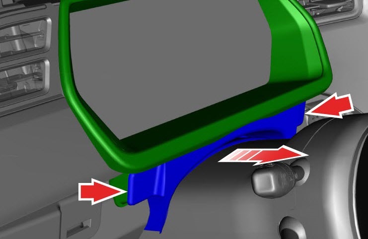 - Release the clips (x2) that secure the steering column cover to the instrument cluster bezel.
