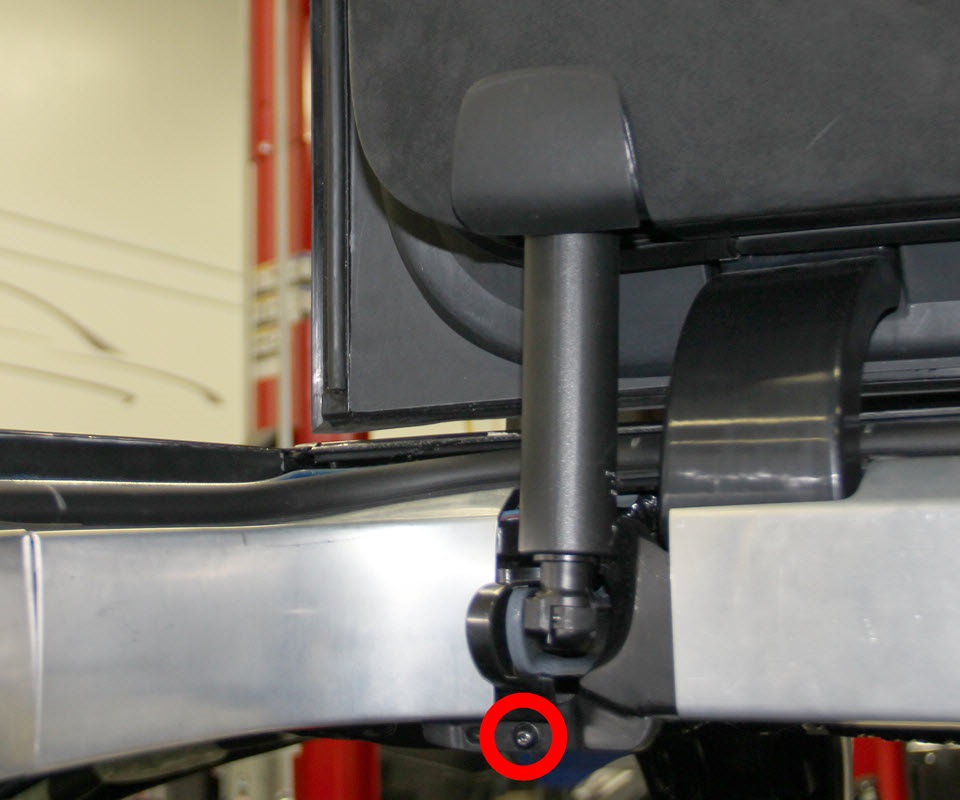 - Remove the screw that secures the front racetrack trim (torque 2.5 Nm).