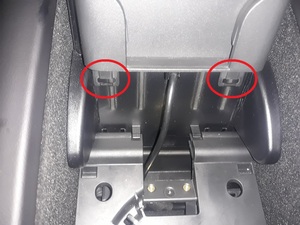 - Remove the sliding lid from the center console sub-assembly by sliding it towards the rear of the sub-assembly and lifting up once the clips are released from the holes in the sub-assembly.