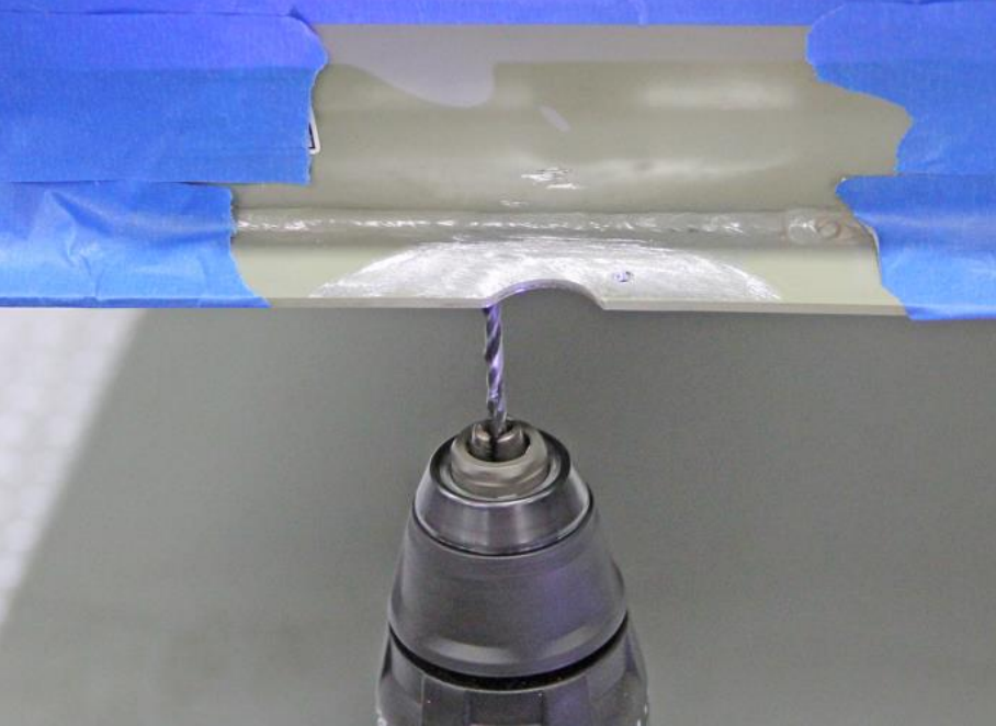 - Use a 5.5 mm (7/32 in) drill to expand each of the 2 holes.