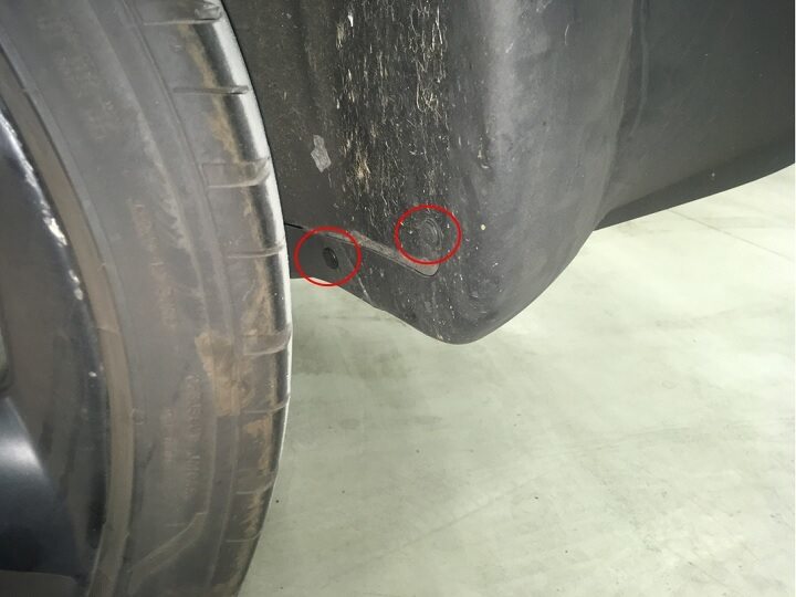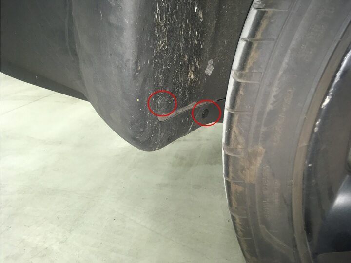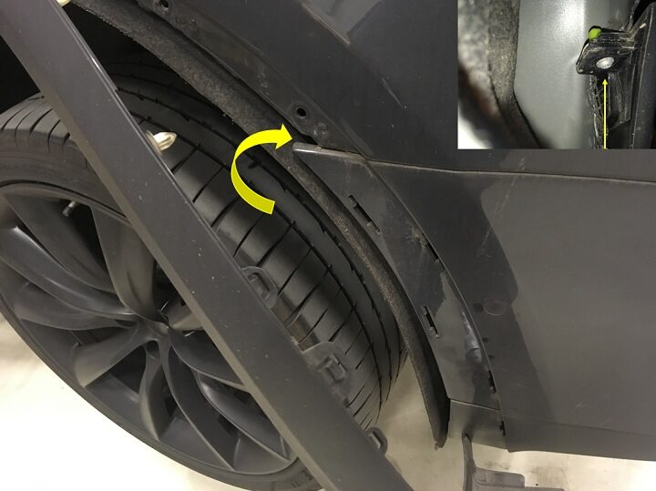 Install clip securing LH rear fender garnish and arch liner.