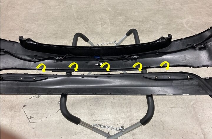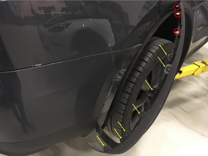 Install RH rear fender garnish onto rear fascia.