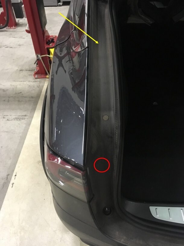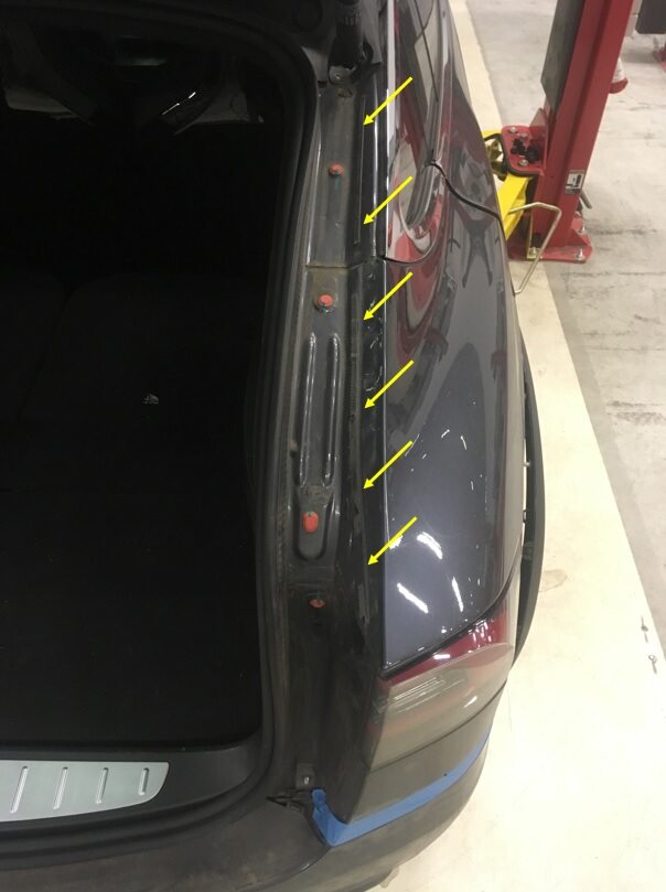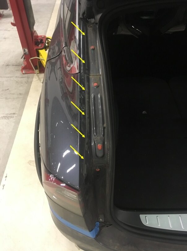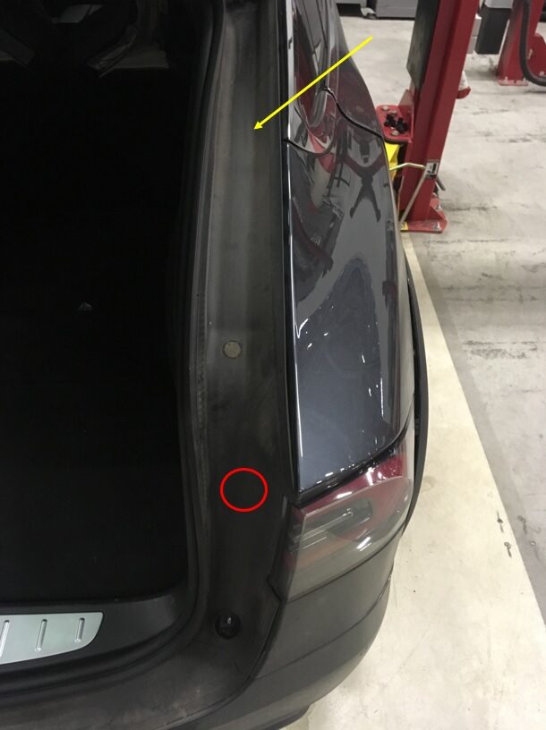 Clean RH liftgate body trough trim surface.