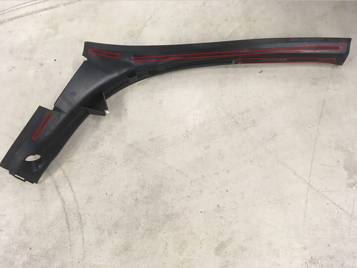 Clean LH liftgate body trough trim surface.