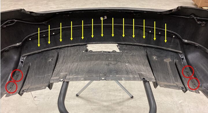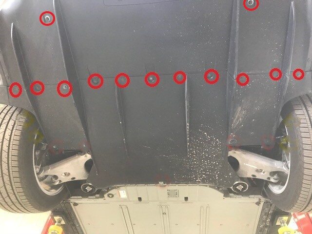 Install bolts securing mid aero shield to rear fascia.