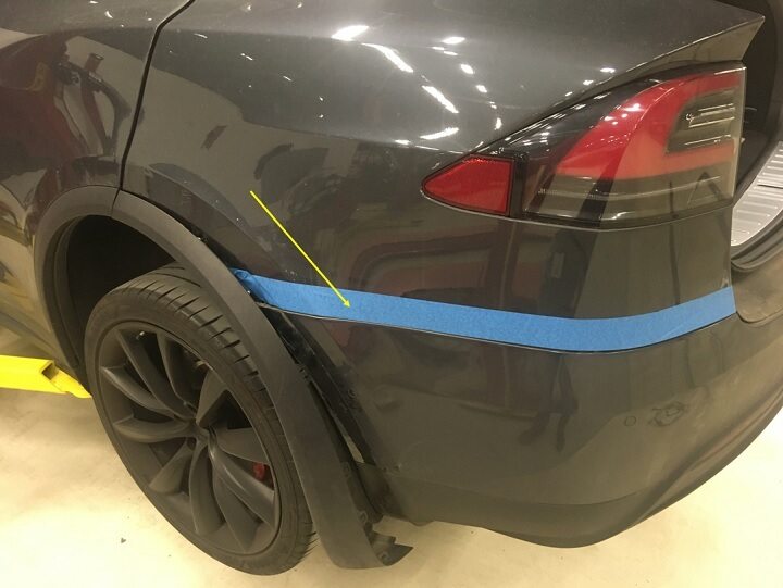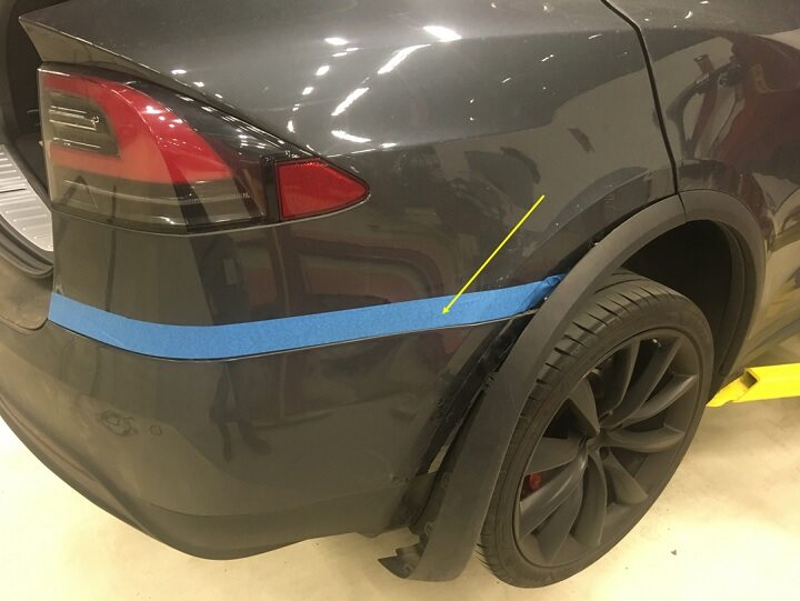 - Apply masking tape to protect LH rear quarter panel.