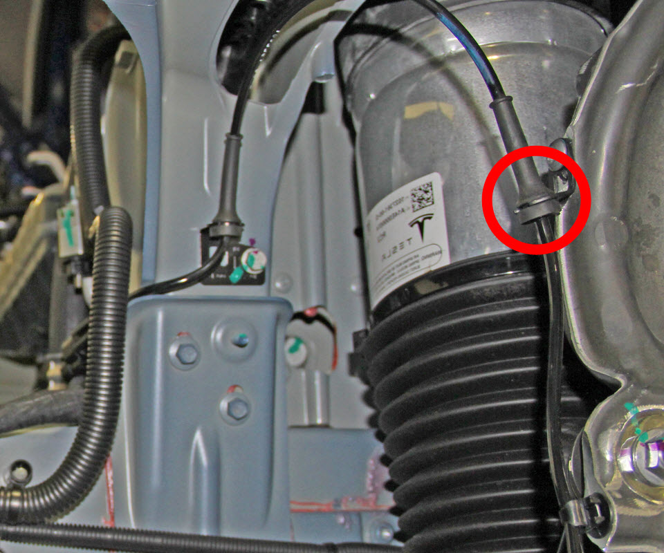 - Install the LH front wheel speed sensor harness into the bracket on the LH front knuckle.