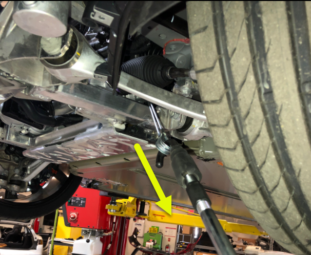 - Move the vehicle to a 4-post lift.