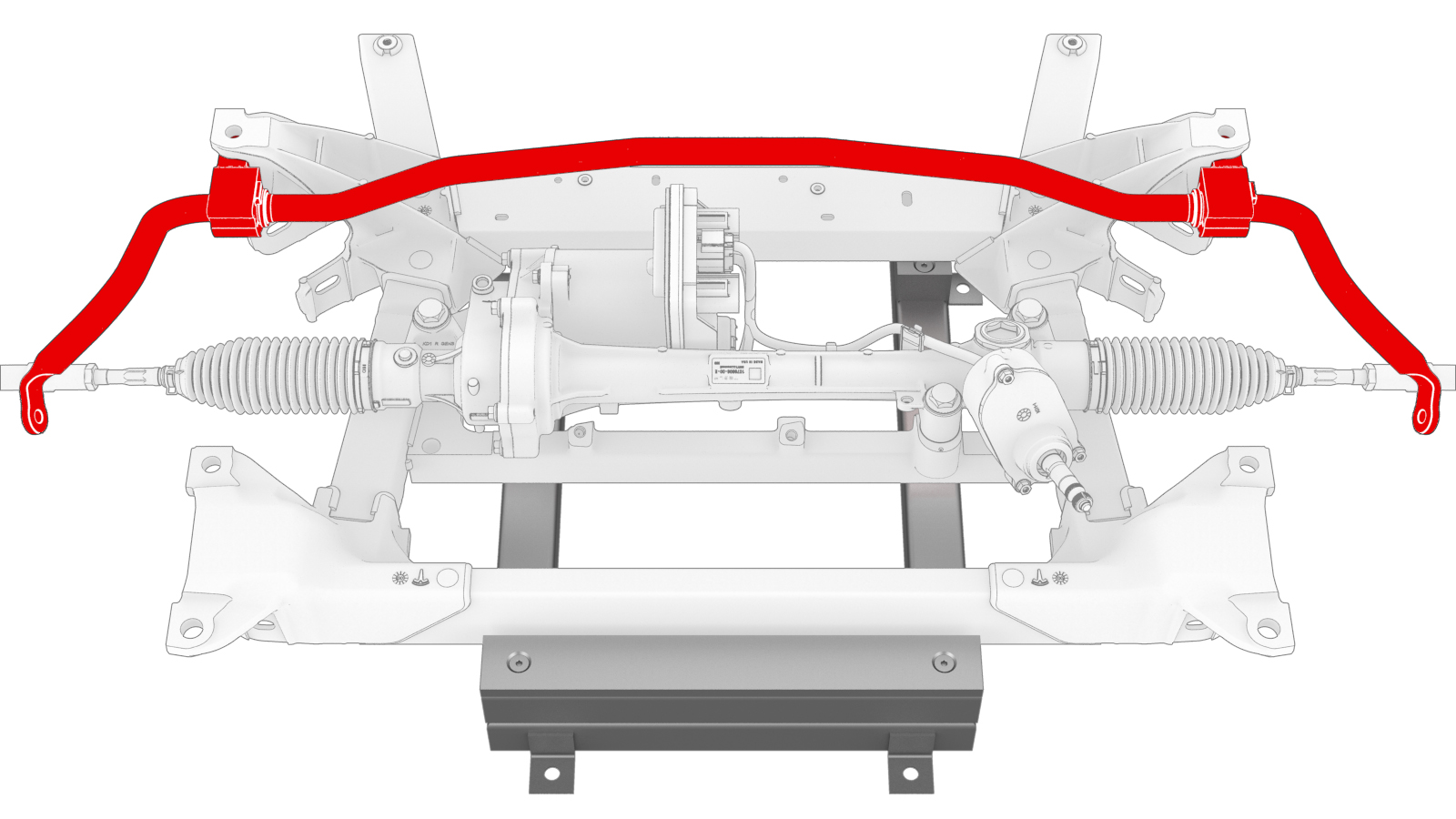 - Install the front stabilizer bar into position for installation on the front subframe assembly.
