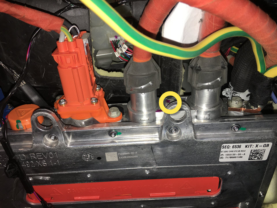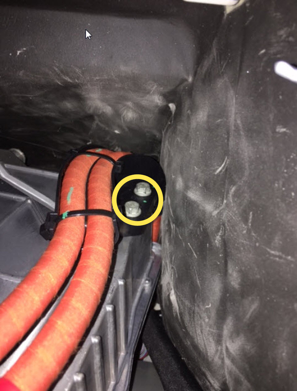 - Install new bolt bolt that attaches the HV harness into the charge port (torque 6 Nm).