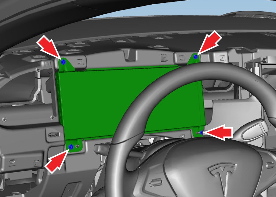- Remove the screws (x4) that secure the instrument cluster to the IP carrier (torque 2 Nm).
