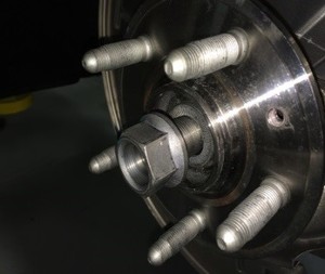 - Set the hub puller onto the LH Rear hub and bearing assembly, and then use the hub puller to loosen the LH rear halfshaft from the hub splines.