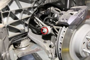 - Release the bolt that secures the upper link to the knuckle (torque 140 Nm).