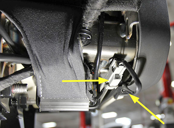 - Disconnect the seat cushion electrical connectors (x4; 2 gray, 2 black). Release the black connectors from the seat frame.