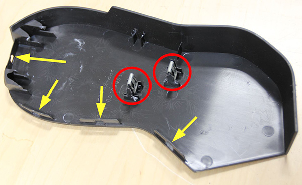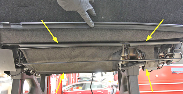 - Release the rear toe kick trim by releasing the outer J-clips (x2) and then the inner J-clips (x4).