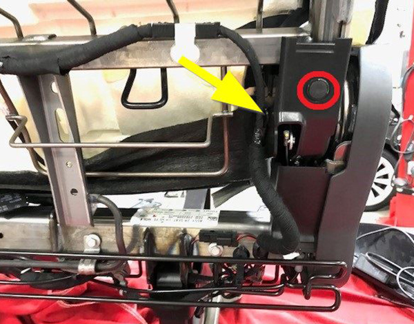 - Use a T20 socket to remove the screw that attaches the easy entry microswitch bracket to the seat frame (torque 3.5 Nm).
