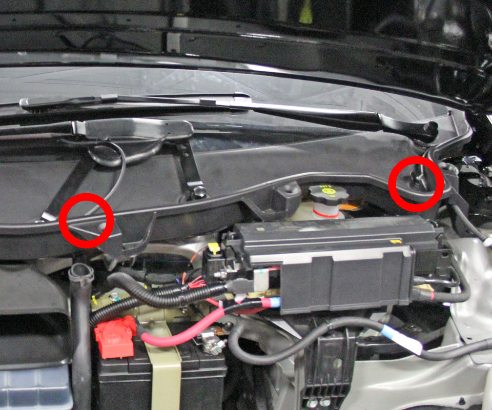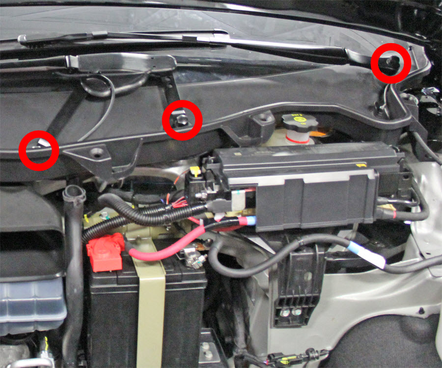 - At the base of the wiper arm, disconnect the washer hose from the cowl screen.