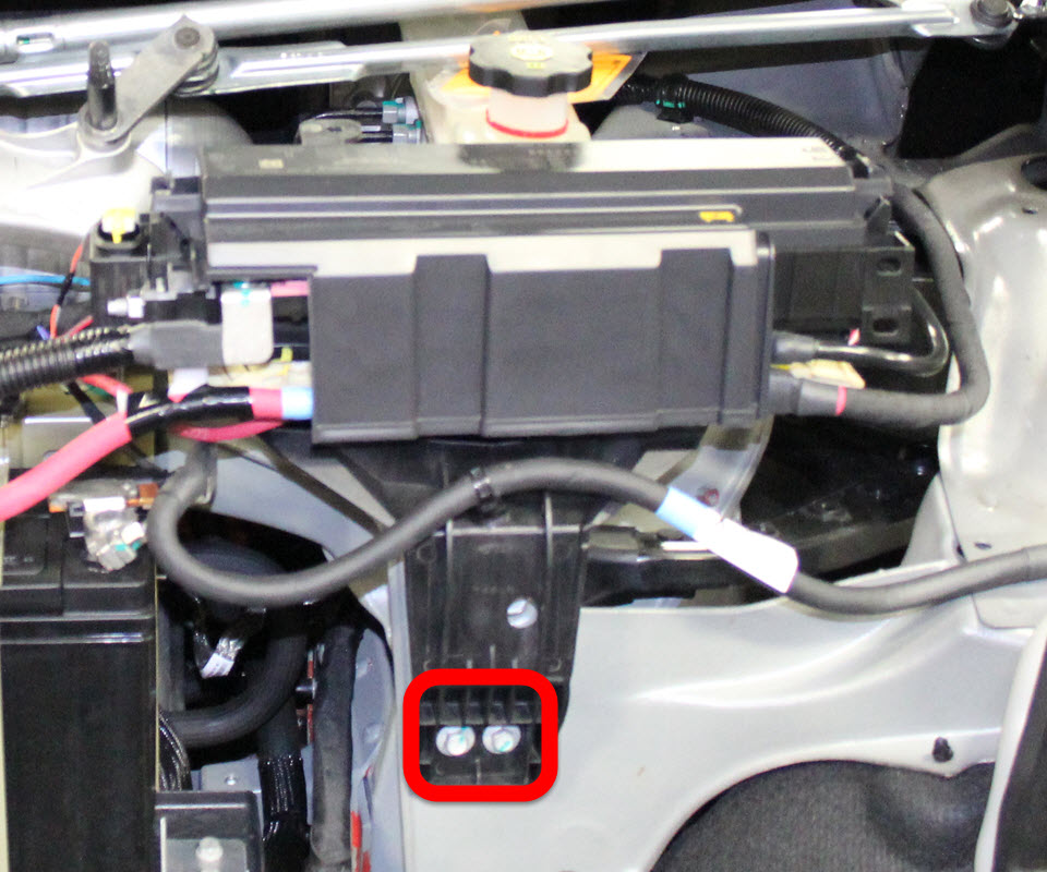 - Unclip the fusebox harness from the 12V battery tiedown.