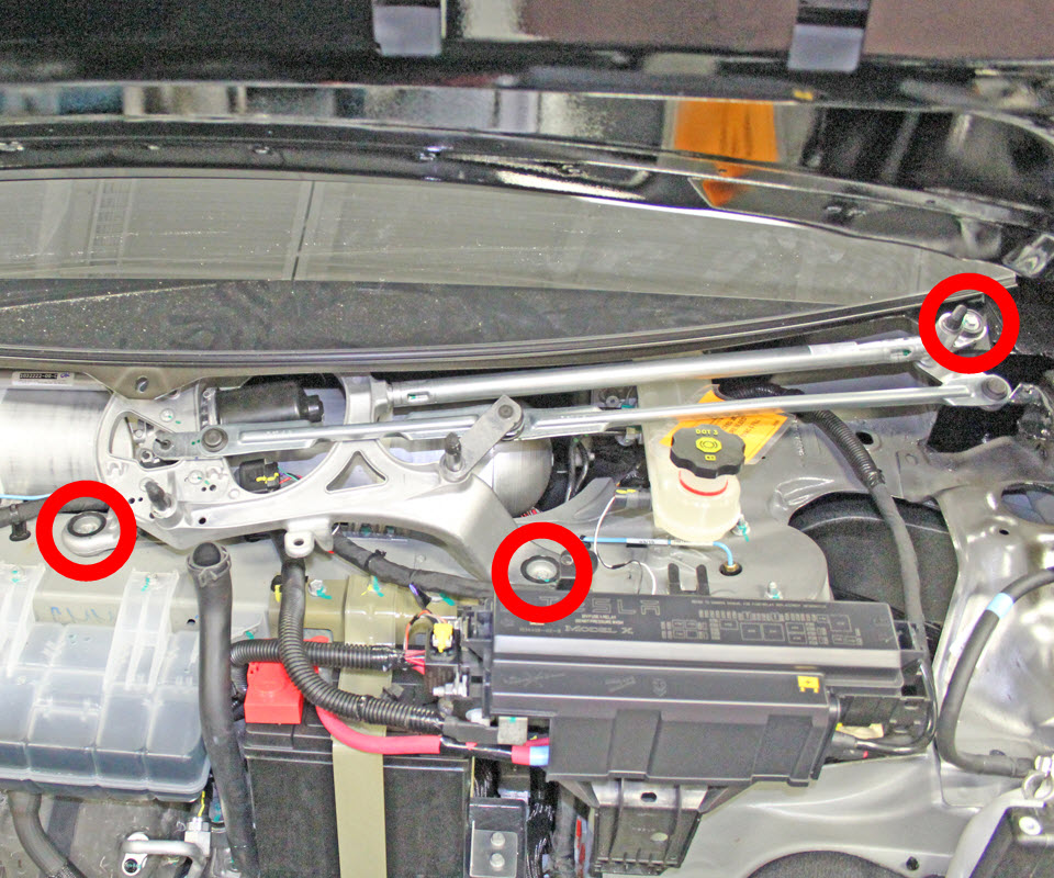 - Release the bolts that secure the wiper module to the body (torque 9 Nm), but do not remove the module at this time.