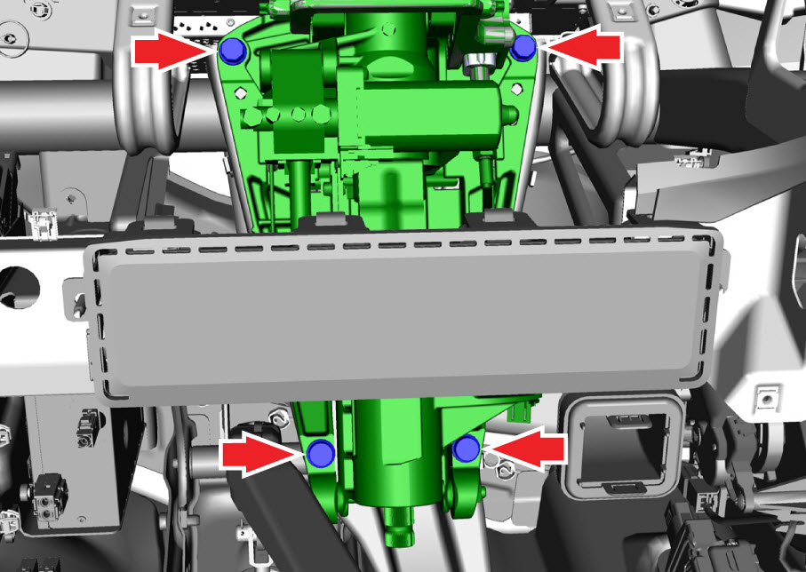 - Remove the fasteners that secure the steering column to the mounting bracket (upper nuts 30 Nm, lower bolts 17 Nm).