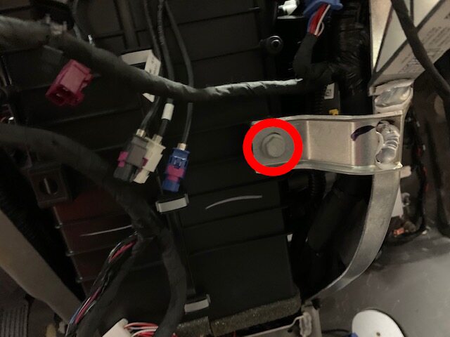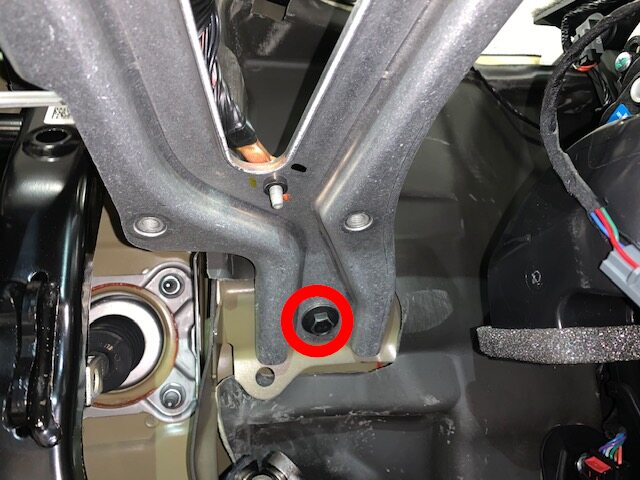 Note2x bolts, 10mm, 5 Nm, 1x screw, T20, 2.5 Nm, 1x nyloc nut, 13mm, 5 Nm, Install new nut