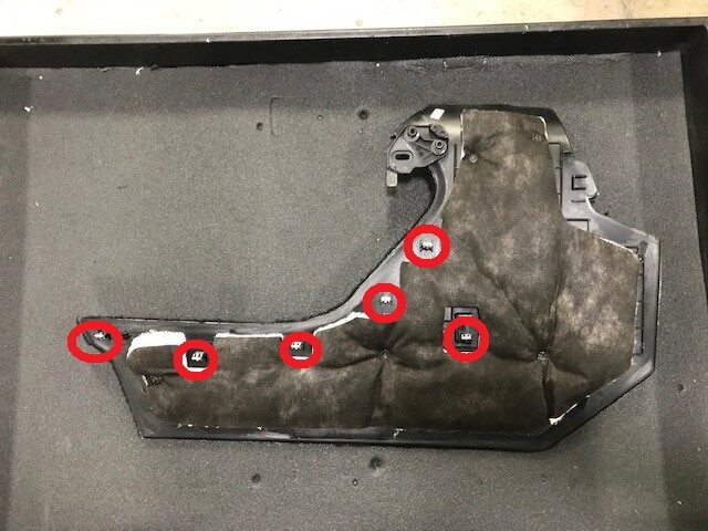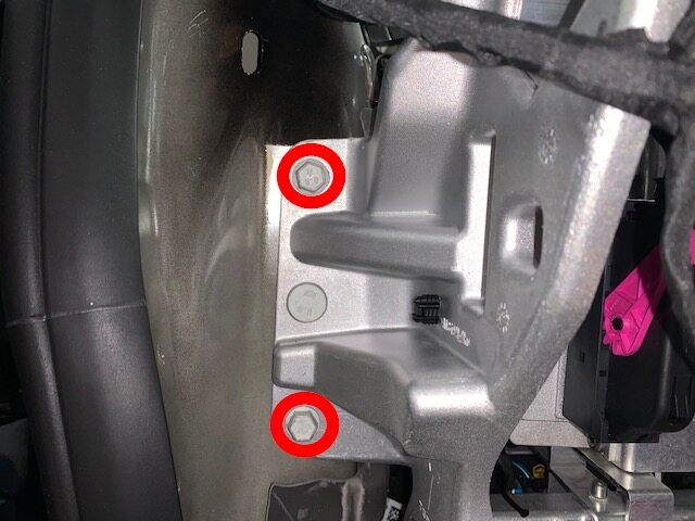 Remove both LH rear screws securing