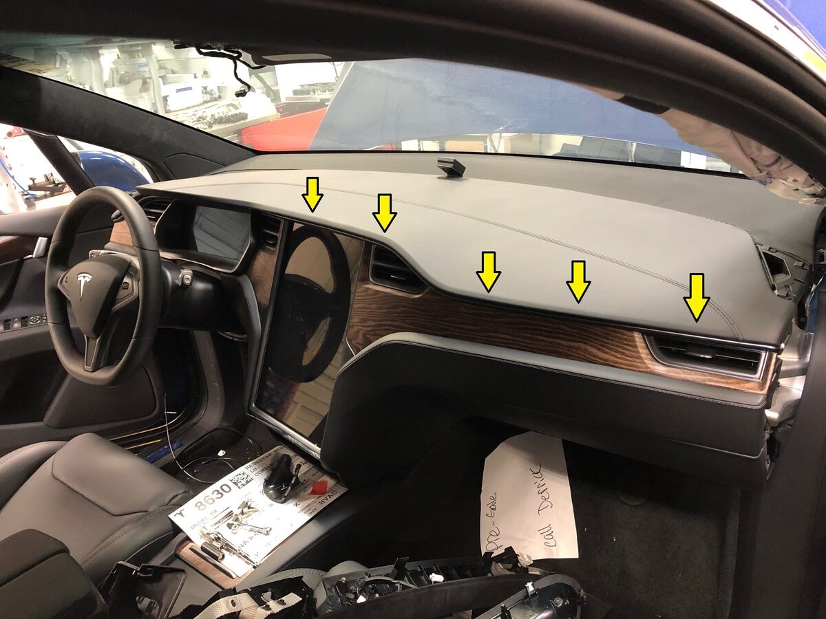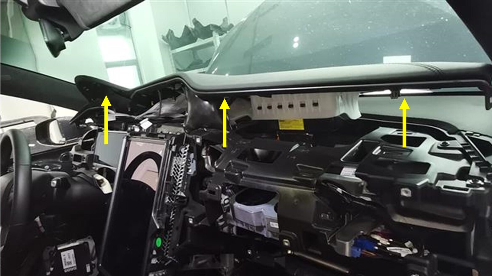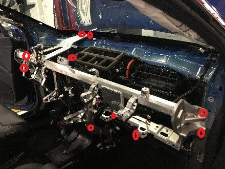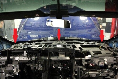 Note2x connectors, 2x datums, 7x tabs, 2x clips, Connect connectors then secure tabs downward onto IP sub assembly and lower trim, Secure rear of trim