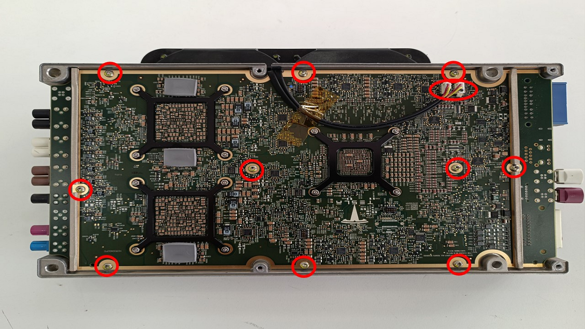 - Remove the screws (x4) that attaches the top cover of the Autopilot ECU.