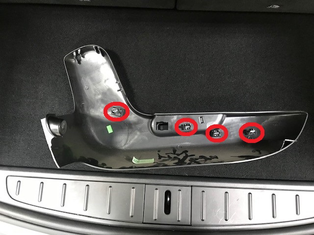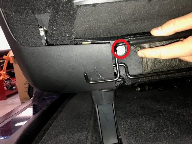 Reinstall J hooks that attach LH toe kick at back of seat