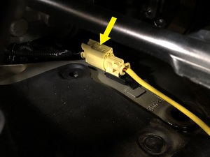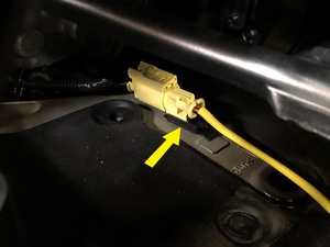 - Release the fir tree clip that attaches the LH pedestrian protection actuator connector to the body.