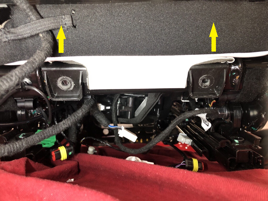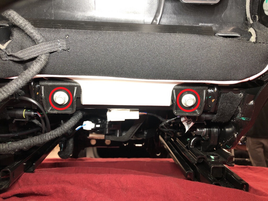 - Slightly lift the RH 2nd row seat cushion pan upward, but do not fully remove the cushion at this time.