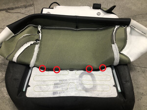 - Use diagonal cutters to cut the hog rings at the front of the RH 2nd row seat cushion trim, and then release the cover from the hog rings.