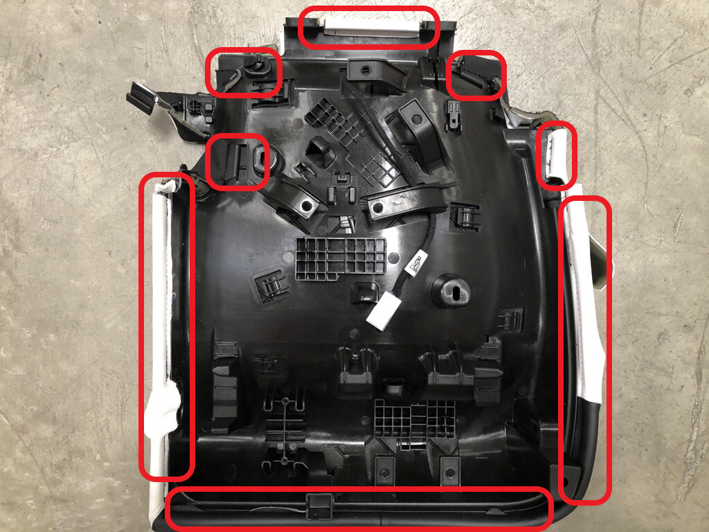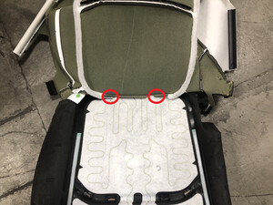 - Attach the remaining portion of the RH 2nd row seat cushion trim to the foam padding.