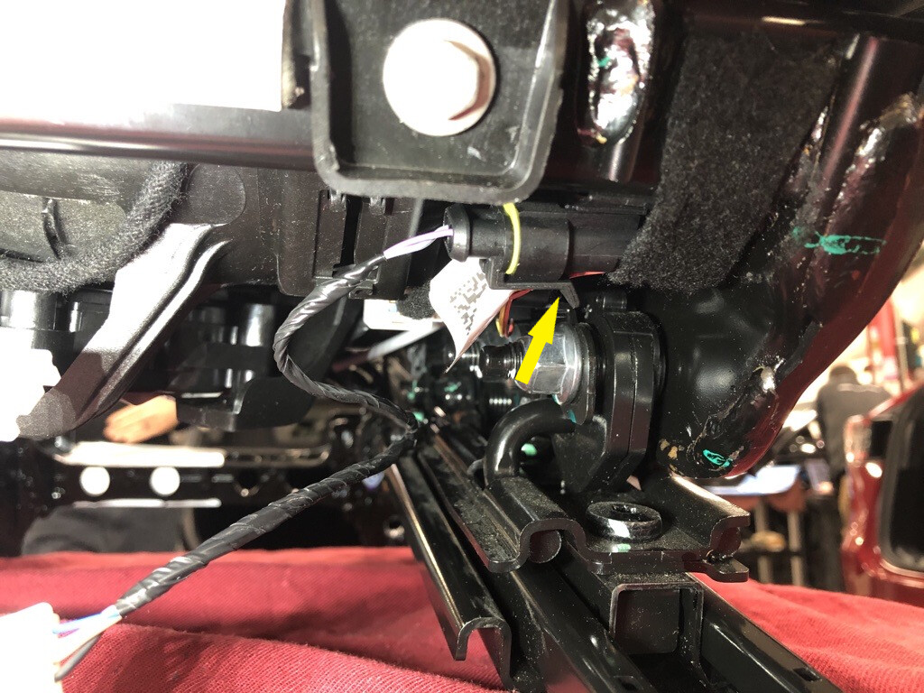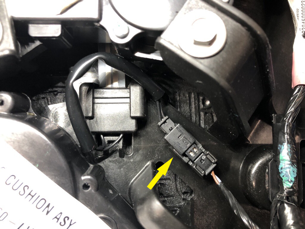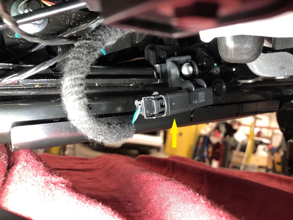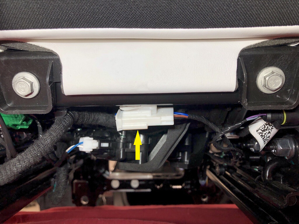 - Install the RH 2nd row seat heater pad connector to the cushion pan.