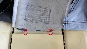 14. Remove the nuts(x2) that attach the driver inboard airbag to the seat back frame.