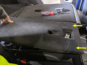 NoteUse small screwdriver to manipulate the center seatback latch to release