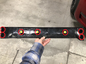 Note5x patch bolts, 11mm, 37 Nm, Install new patch bolts, Bottom seat bolts located behind main carpet, Torque in sequence; Outboard front -> Both inboard rear -> Outboard rear -> Inboard front