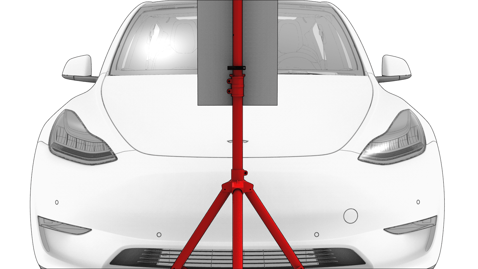 CAUTIONDo not use existing marks from previous verifications. Remove any existing tape. Measure and reapply new tape to ensure the tape is in the correct location.NoteThe checker pattern on the target is used for vehicles with 1st generation Autopilot. Ignore the checker pattern when affixing the tape.NoteIf the vehicle is equipped with aftermarket suspension components that alter the vehicle ride height, the red tape might have to be adjusted to ensure accurate pitch verification.