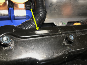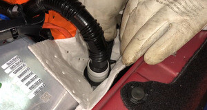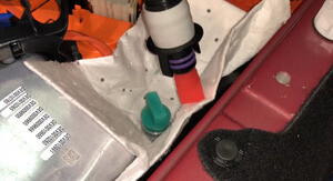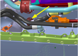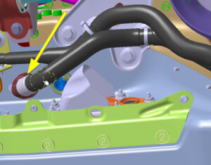 Install LH side hose clip to HV battery rear skid plate enclosure