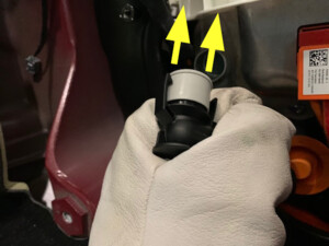 Note1x nut, 10mm, 6 Nm, 1x connector, Engage locking tab, Connect FRL first before connecting 12V to avoid damage to car computer