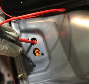 - Measure the voltage across the pyrotechnic battery disconnect mount points, and then install the pyrotechnic battery disconnect. See Pyrotechnic Battery Disconnect (Remove and Replace).