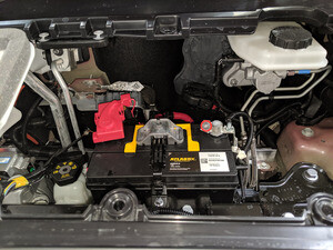 Note1x nut, 10mm, 6 Nm, 1x connector, Ensure vehicle is in park, climate control system is off, and vehicle is not charging before disconnecting 12V, Negative terminal should be disconnected before FRL, Allow 2 minutes for all electrical circuits to fully discharge