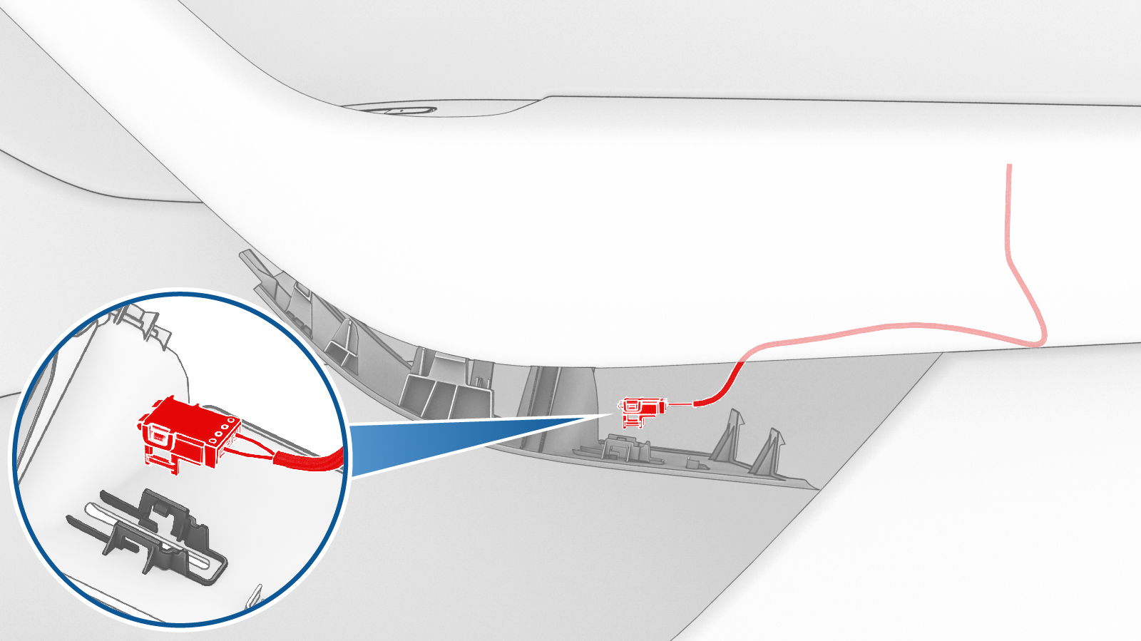 - Install the clips that attach the LED light to the trim panel.