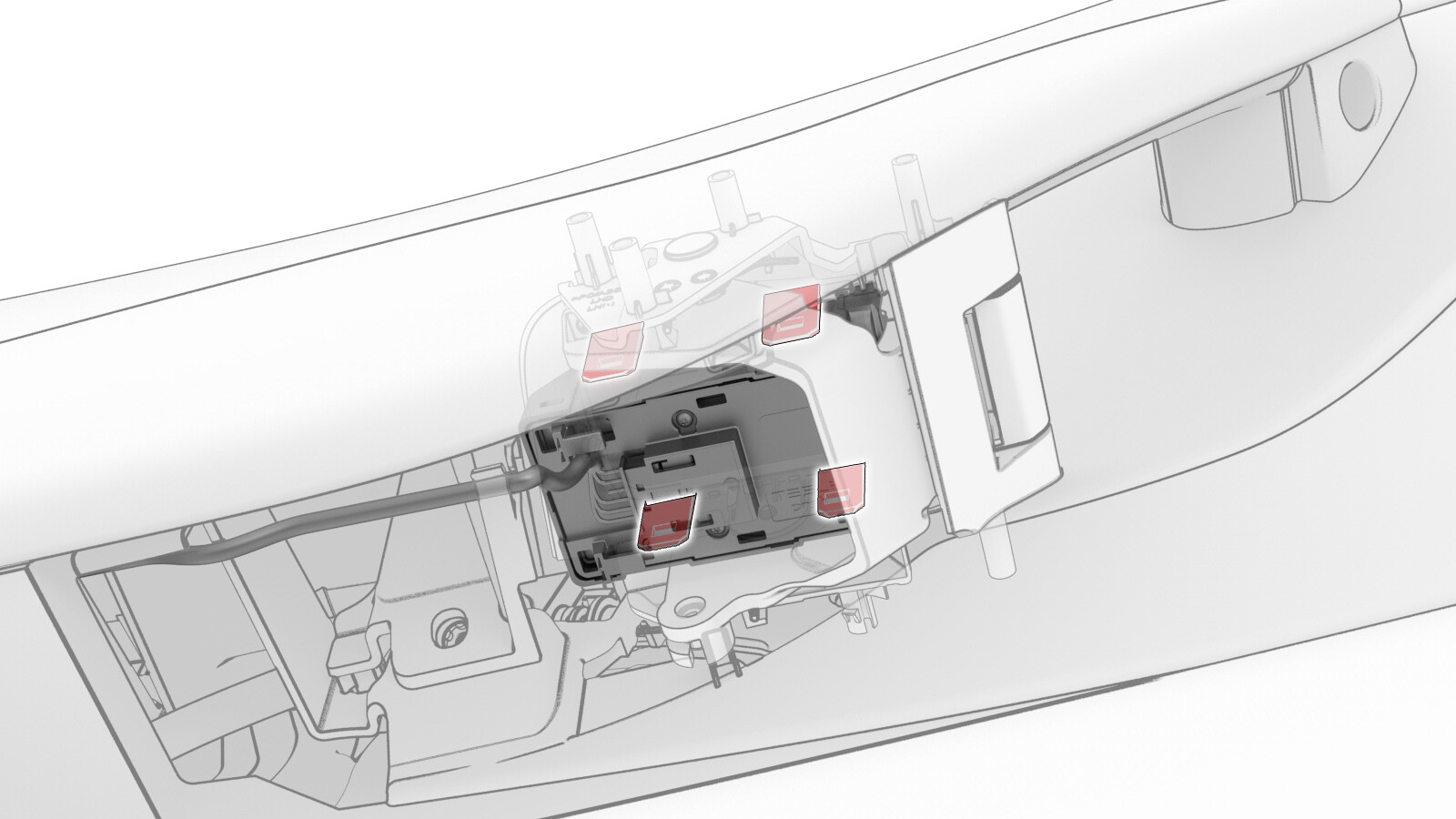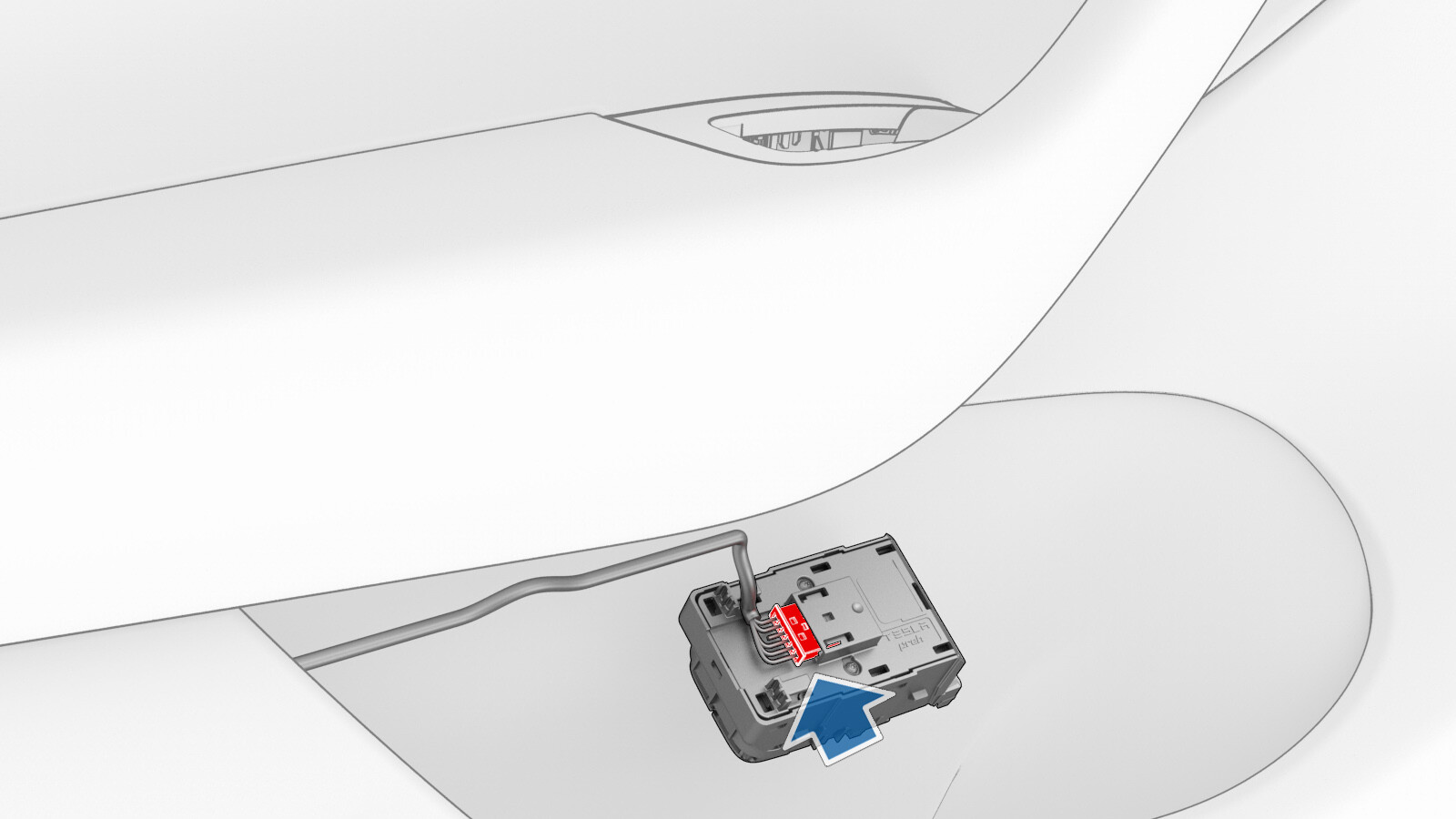 - Fasten the window switch electrical harness to the harness clip, and then connect the electrical connector.