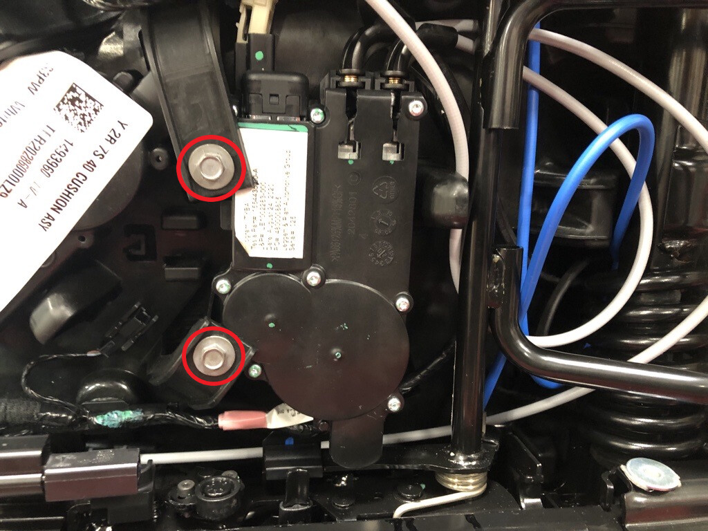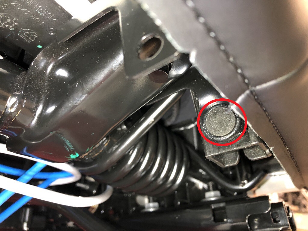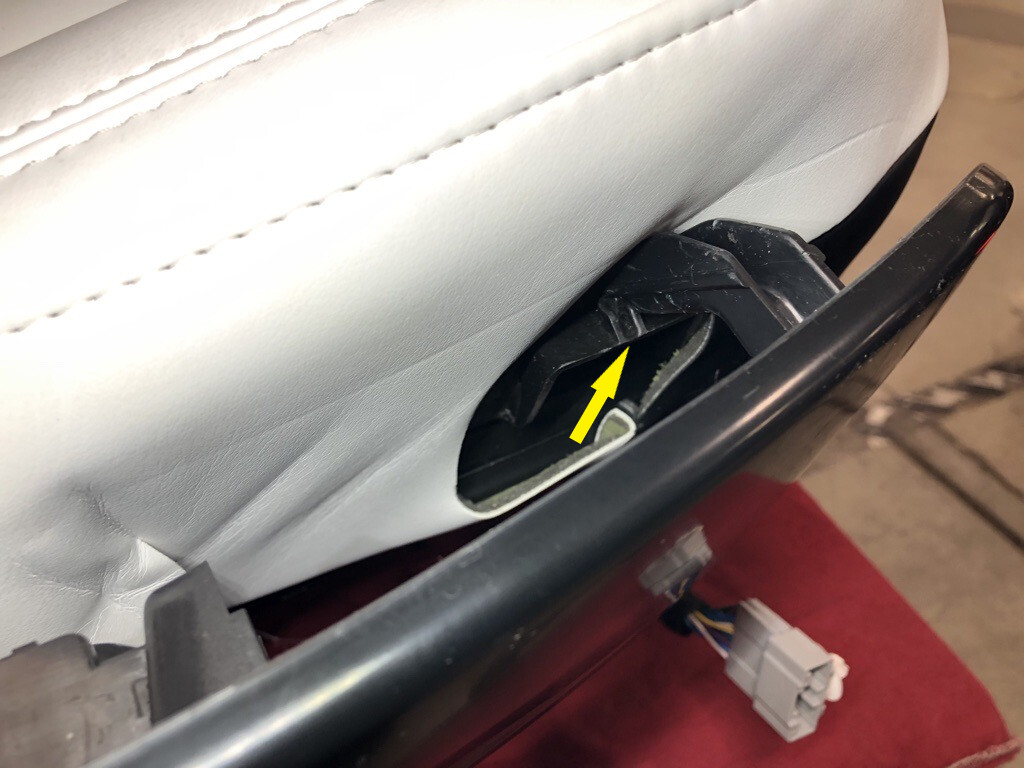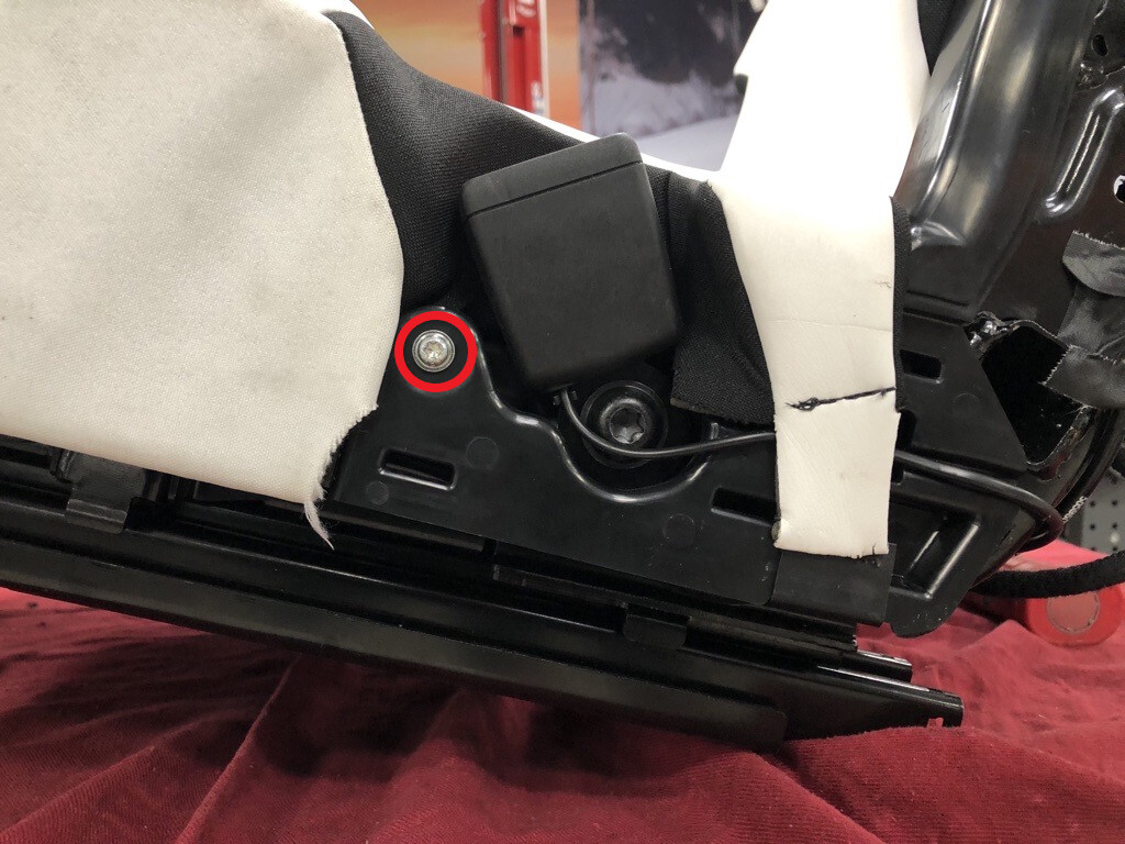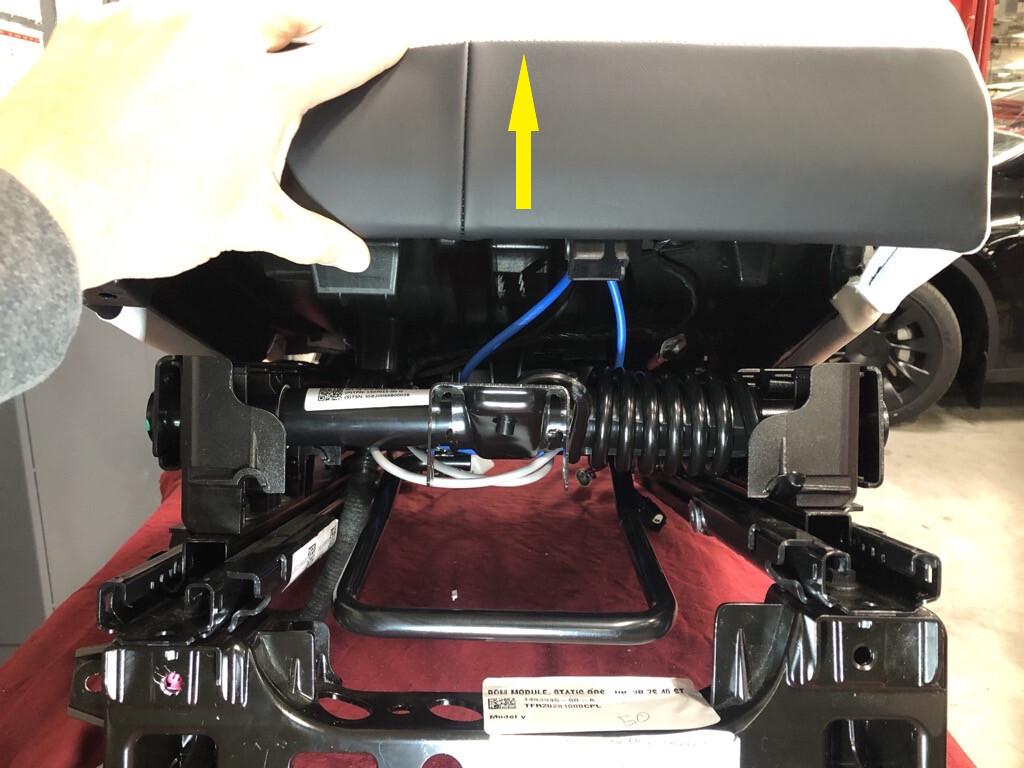 - Slightly lift the RH 2nd row seat cushion pan upward, but do not fully remove the cushion at this time.