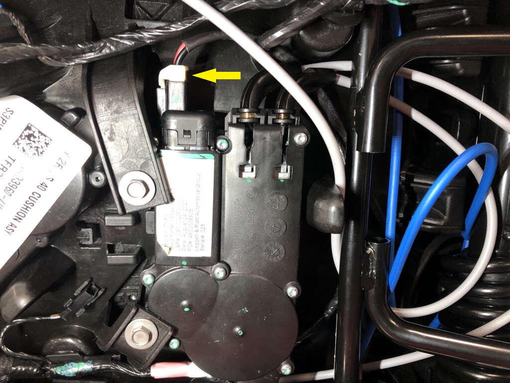 - Using the seat fold tool, connect the recliner actuator electrical connector into the recliner actuator, and then activate the switch to fold the RH 2nd row seat down.
