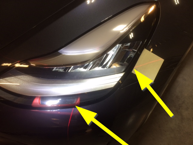 NoteOr place a piece of paper against the LH headlight, and then adjust the tool to place the headlight laser guide crosshair over the brightest spot on the paper.